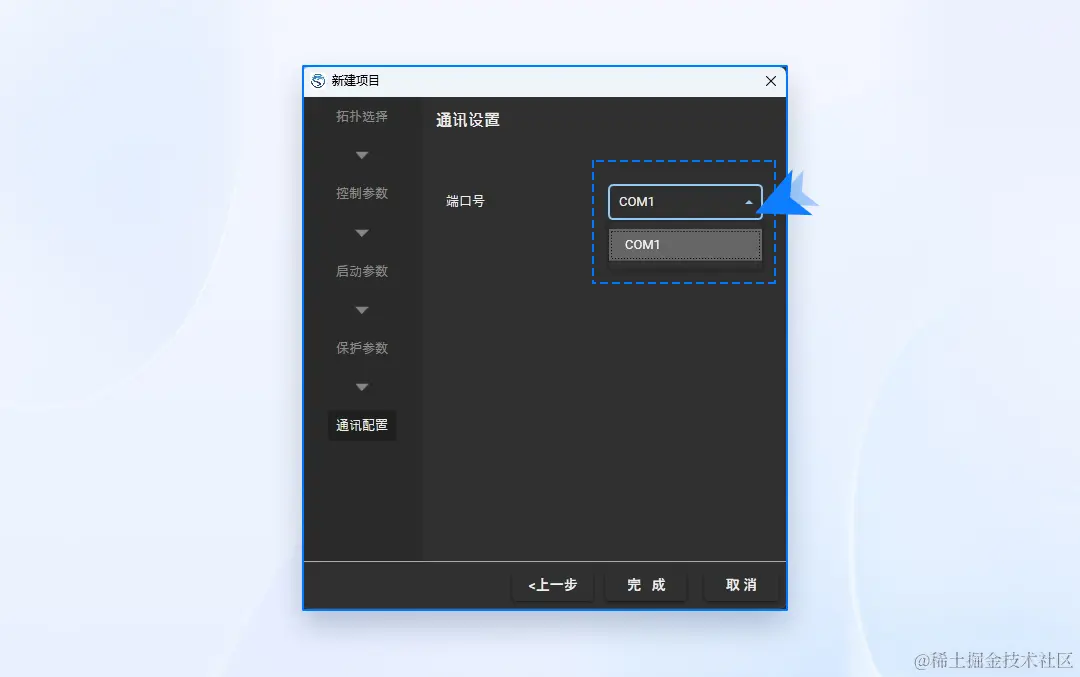 - 选择通讯端口;