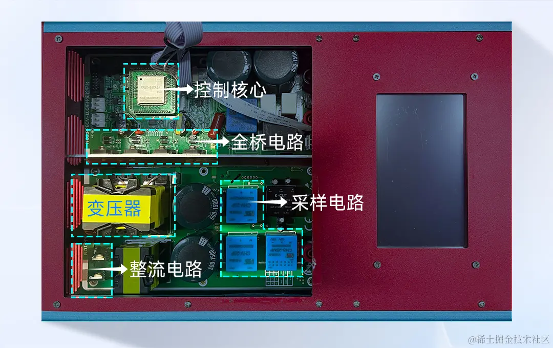大家可根据前文介绍的参数设计方法进行电源拓扑的器件选型,再按照外围电路设计图搭建PWM驱动电路、采样电路以及保护电路并与电源控制核心进行连接。移相全桥DC-DC变换器的硬件测试平台如图。