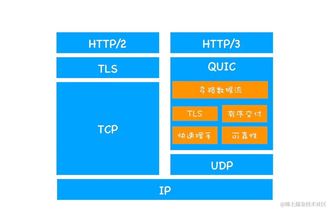 可以把 QUIC 看成是集成了“TCP+HTTP/2 的多路复用 +TLS 等功能”的一套协议。