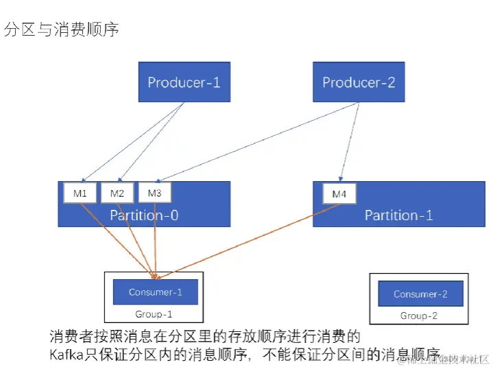 总而言之,无论是生产得到的offset消息顺序还是消费顺序,分区内部的消息是按顺序的,分区之间不存在任何的顺序相关性。