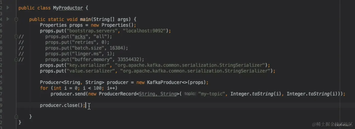- send方法会返回一段Future类型的结果,进一步通过它的get()方法对消息进行阻塞,等这一条消息发送之后才会进行下一条消息的发送。