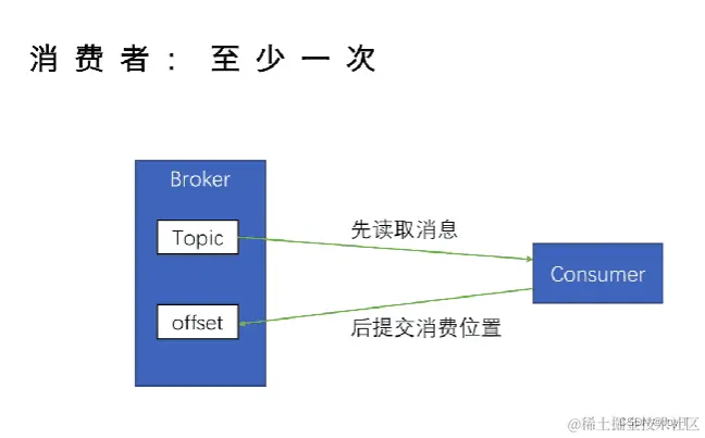- 消费者在处理消息之后提交偏移量(通过手动提交实现)。这样,即使发生故障,消费者也可以从最后一个已知的提交偏移量重新开始,确保所有消息至少被处理一次。