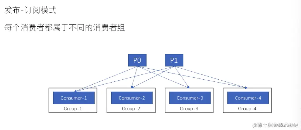发布订阅模式:每一个消息都会被每个消费者所消费。