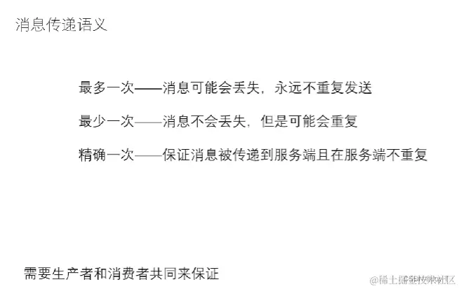 精确一次:需要更复杂的机制,比如 Kafka 的事务(Transactions)支持,确保生产和消费过程中的消息不会丢失也不会被重复处理。
