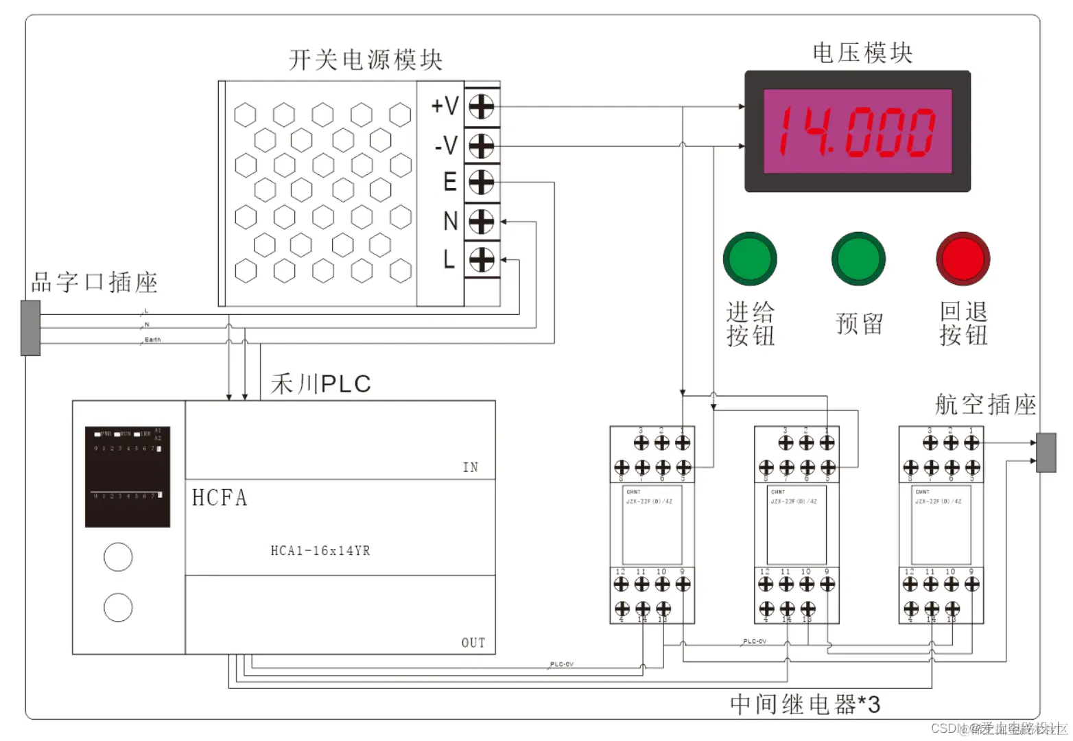本思路来源于C语言的状态机控制,适用于所有PLC。 完全杜绝“双线圈”困扰,几十步与几千步没有多少差别。对于初学者可有效的打开编程思路,相关描述清晰详尽。搭建成本很低,一个禾川PLC(国产仿三菱,共用编程软件GX Works2),一只12V开关电源模块,1只12V小电机(玩具小车里就有),3只中间继电器。用于练手,开关电源无需调整电压,中间继电器仅需2只即可。