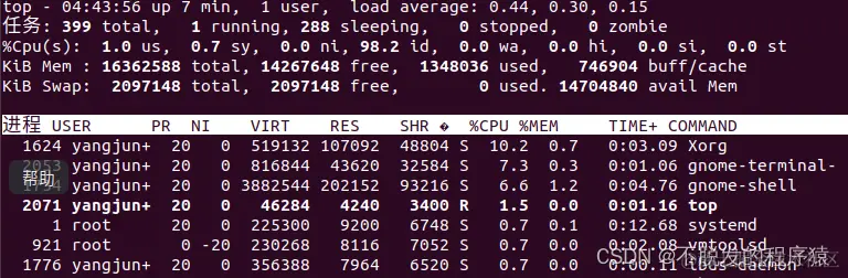 这是最常用的命令之一,它提供了一个实时更新的系统状态视图,包括CPU使用率、内存使用、正在运行的进程等信息。