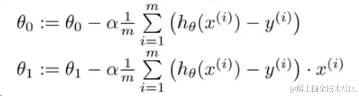 θj:=θj−αi=1∑m(hθ(x(i))−y(i))xj(i)
