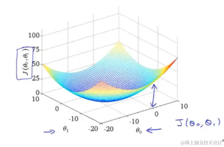 代价函数:J(θ0,θ1)=2m1i=1∑m(hθ(x(i))−y(i))2