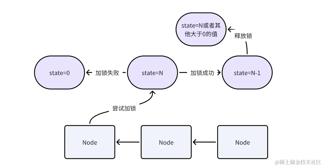 - 1. 通过AQS尝试加锁时,加锁的对象是啥?是我们要访问的同步资源么,NO,AQS加锁的对象其实是内部维护的一个state变量,这一点与synchronized不一样,synchronized加锁的对象就是访问的同步资源