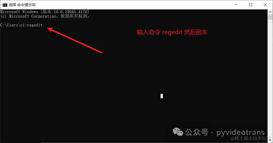 三:在打开的 黑窗口即cmd窗口中,输入单词 “regedit” 然后回车