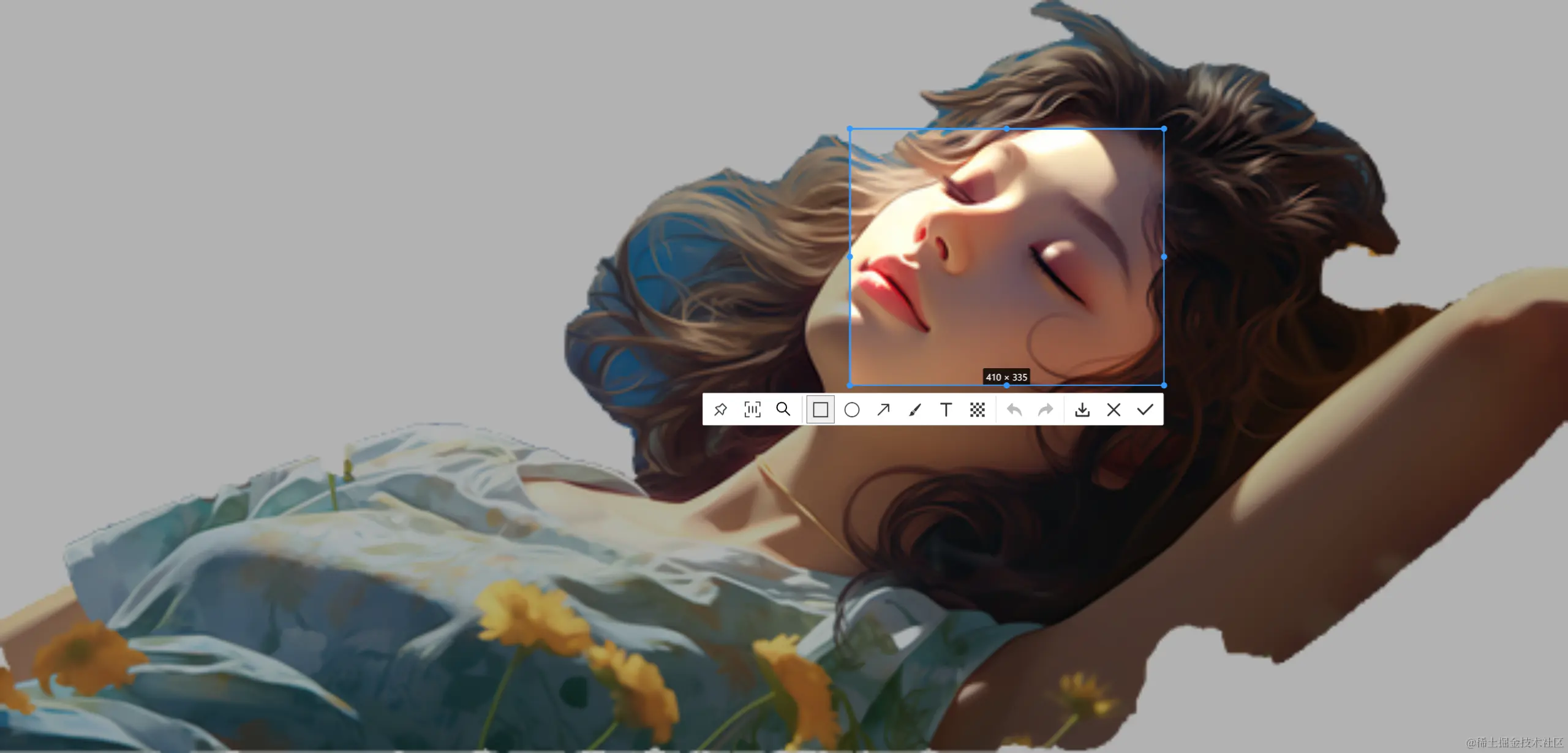 截取图片后,点击图钉按钮进行固定,这样,你将能将截取下的图片拖拽到屏幕中的任何位置并且始终保持在窗口最上层。这样的操作,在你需要对照图片、获取信息时十分有用。不仅如此,你还能够识别截取图像中的二维码。画上简单标记或者打上马赛克,又或者写上文字。你可以将截取到的图片下载到本地。