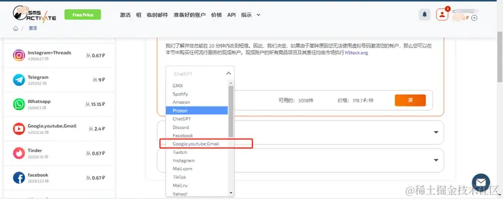 最后正如你看见[sms]这个平台提供现成账号不止gmail账号,还有ChatGPT账号(我看了一下好像是119卢币,九块多人民币)!还有其它的平台的现成账号,大家可以自行获取哦!