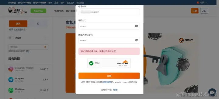 1、进入官网[sms-activate.org]首页,点击右上角的[注册],进行注册,如下图所示