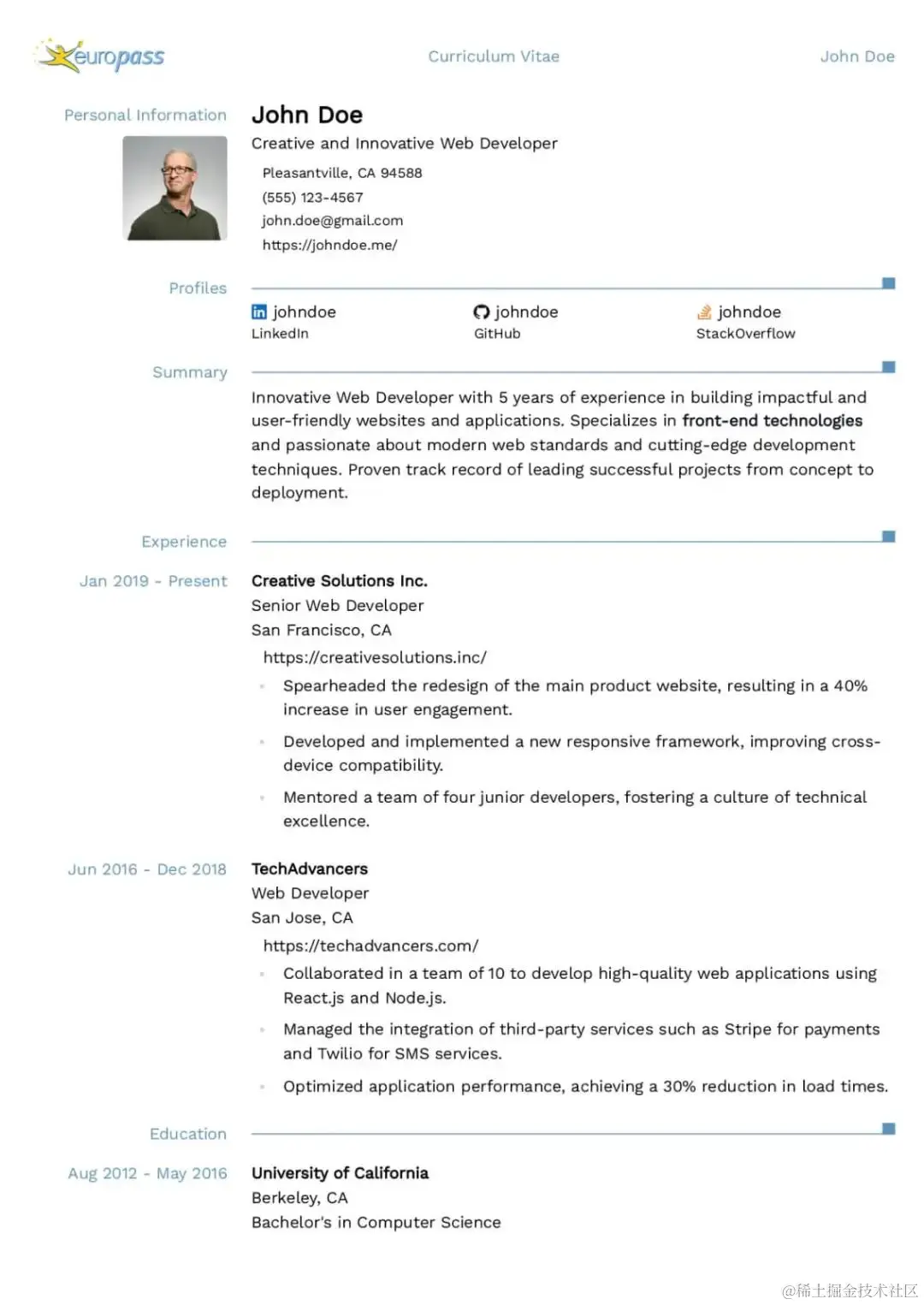 - 提供数十种模板可供选择,从专业到现代风格,分享您的简历的个性化链接给公司或招聘人员,以便他们获取最新更新