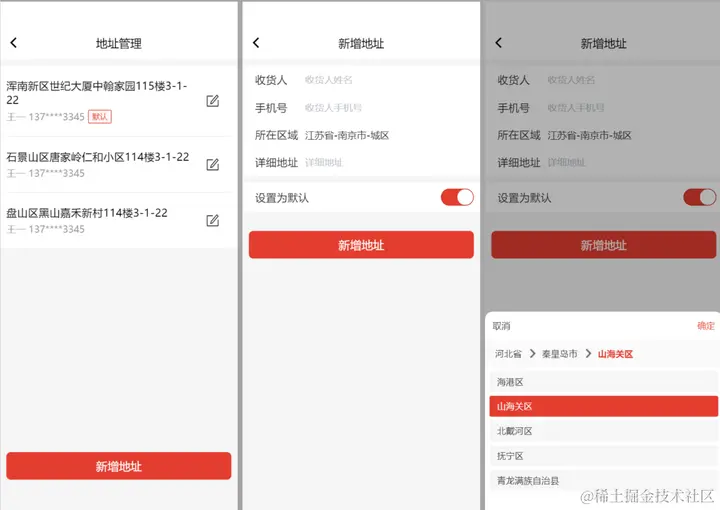 - 收货地址新增页面更新