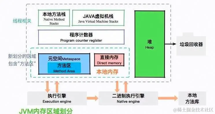 接下来,我们来说说方法区(Method Area),又称为永久代(PermGen),是Java虚拟机内存管理的一部分,用于存储类的元数据信息、常量池、静态变量等数据。尽管在Java 8及之前的版本中常被称为永久代,但在Java 8之后,永久代已被移除,取而代之的是Metaspace(元空间)。