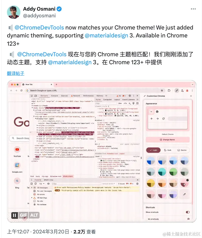 4. Chrome DevTools 现在与 Chrome 主题相匹配!