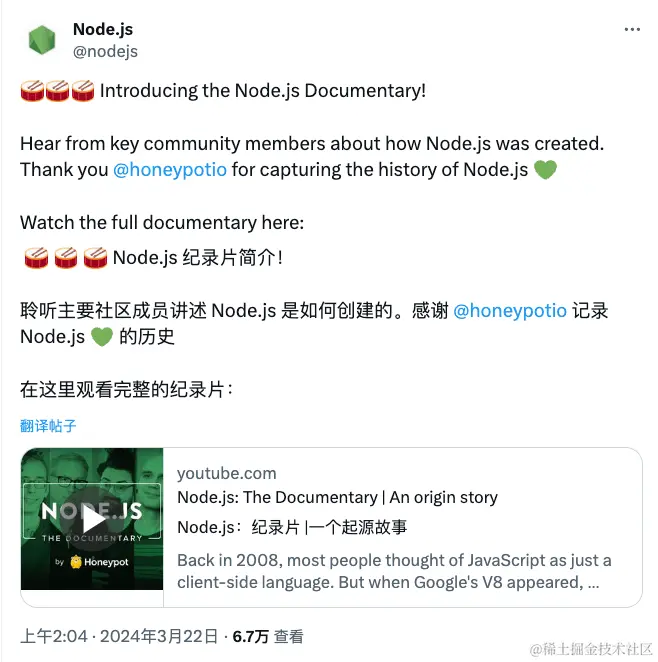 - Node.js 纪录片