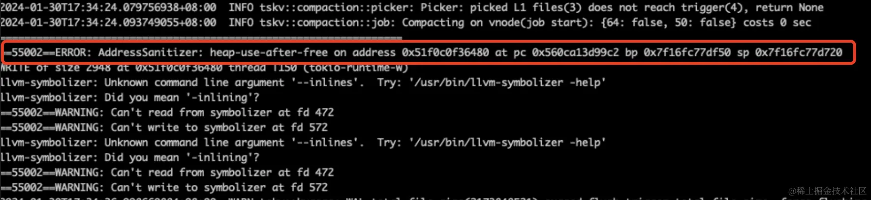 在CnosDB长期稳定性测试环境中我们会经常利用coredump文件排查故障。分析coredump文件发现每次挂掉的位置都不同,而且还经常挂掉在不同的第三方库,更甚至是一些不可能发生问题的代码处。我们也是怀疑内存写坏导致的,但苦于找不到具体原因,我们同时通过以下方式进行了排查: