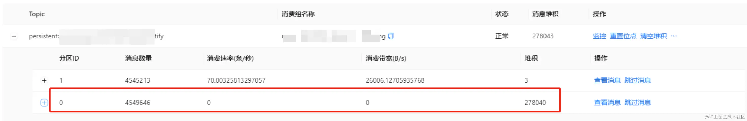 前两天收到业务反馈有一个 topic 的分区消息堆积了: