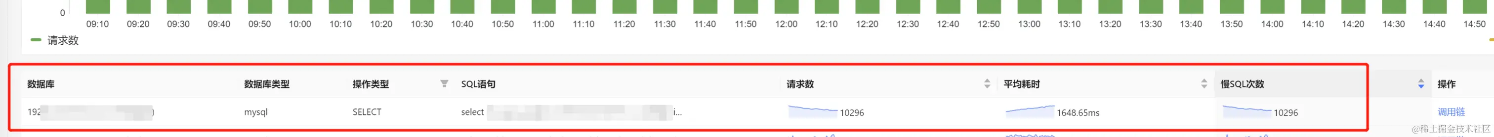 为了最终确认是否由数据库引起的,于是继续查询了当前应用的慢 SQL 情况: