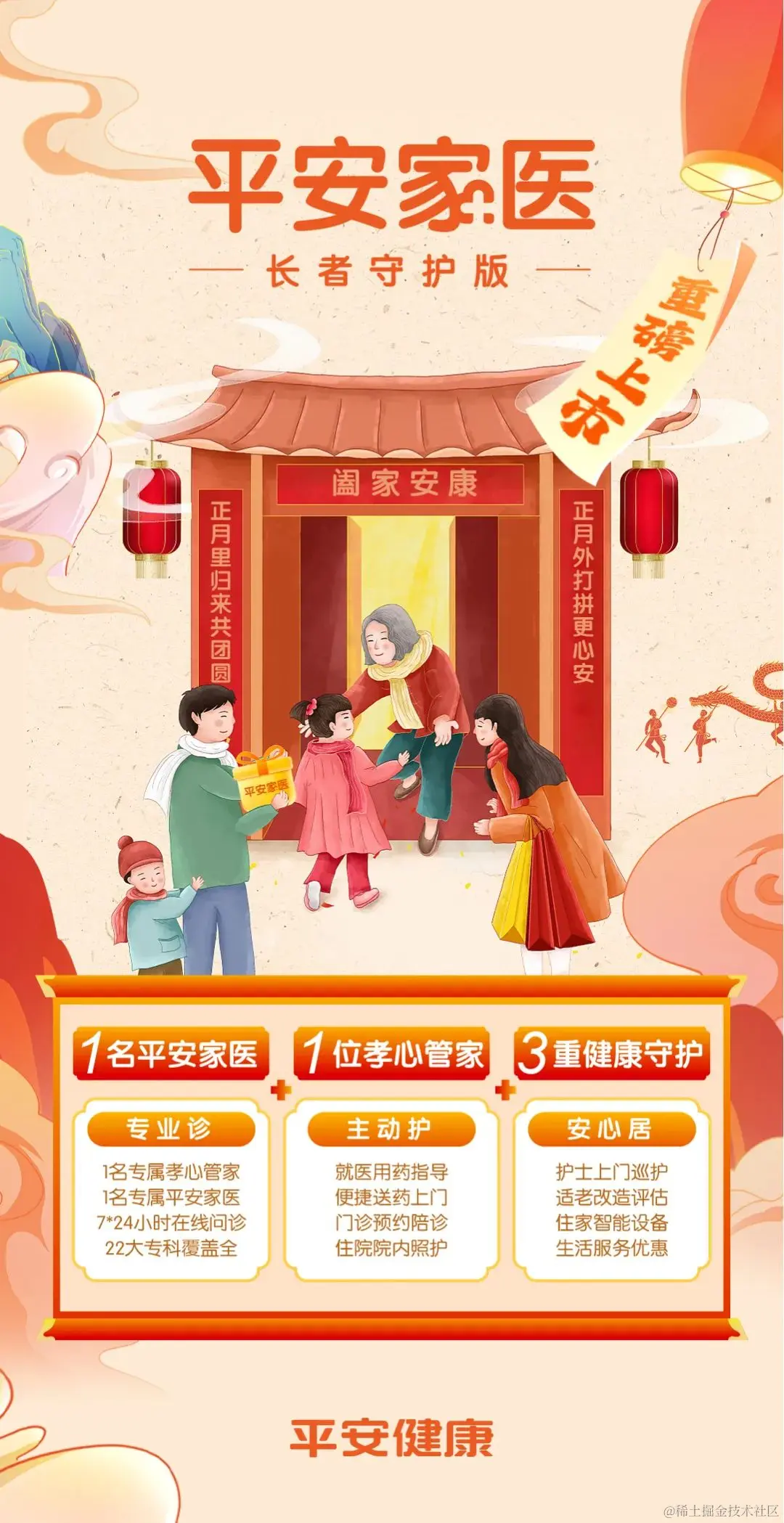 **现阶段,平安健康已推出“平安家医·长者守护版”等服务,并协同合作伙伴强化产品的打造。**比如联合40多家康复护理服务商及行业内专家,打造居家养老“护联体”;协同平安寿险聚焦“医食住行财康养乐护安"十大场景和”“1 套监督体系”,为长者提供一站式、高品质居家养老解决方案,并以智能管家、生活管家、医生管家实现7*24小时服务。