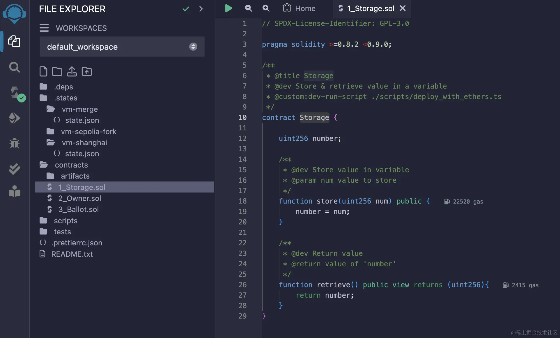智能合约开发:Remix 使开发者能够用 Solidity 语言编写以太坊智能合约。它提供了一个功能丰富的代码编辑器,支持语法高亮、代码自动完成和其他开发辅助功能。