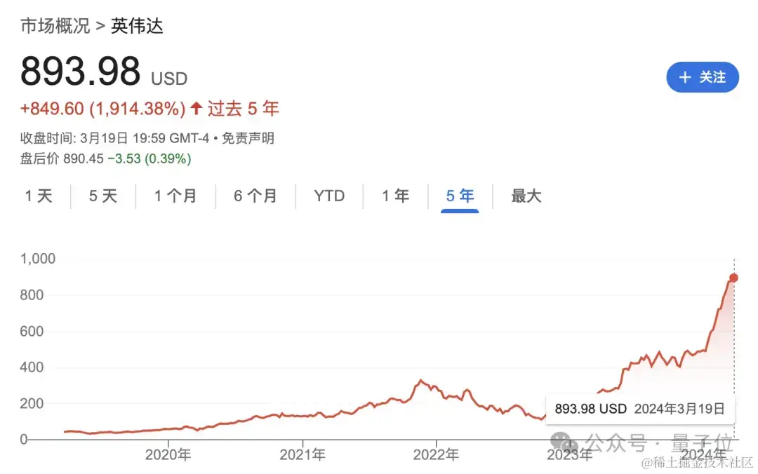 尽管最近两天由于增发股票股价有所下跌,但目前股价仍保持在 896.47 美元,还是凌驾于英伟达之上(893.98 美元)。
