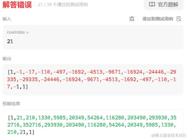 result[i] = result[rowIndex-i]