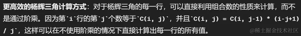 优化:杨辉三角形每一行是个对称结构,算一半即可