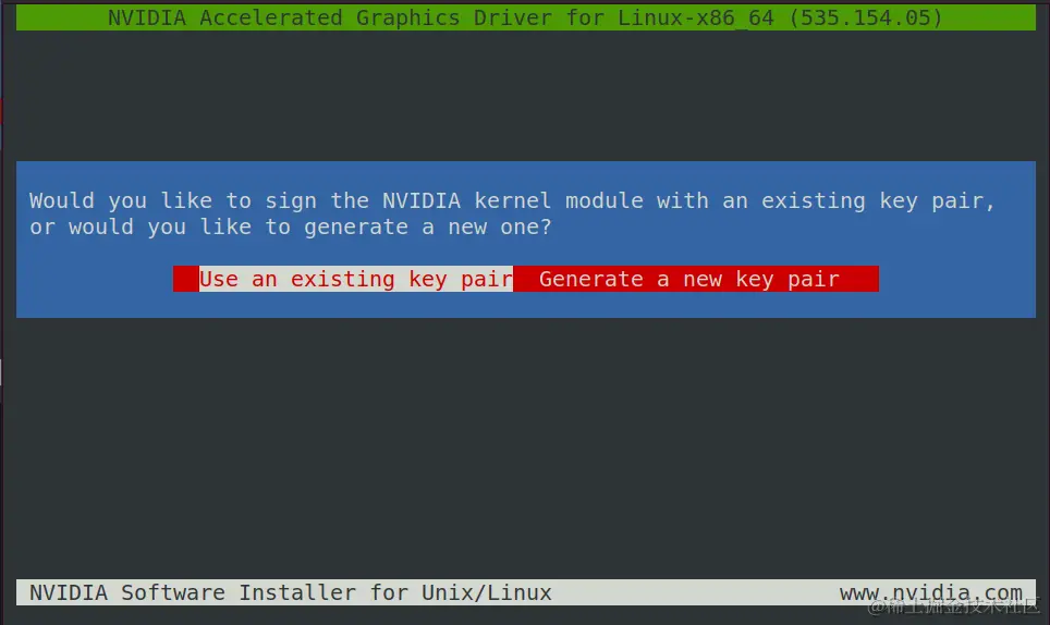 - 系统安装后已经有密钥存在,如果自己手动生成密钥,则运行指令;如果选择第二项