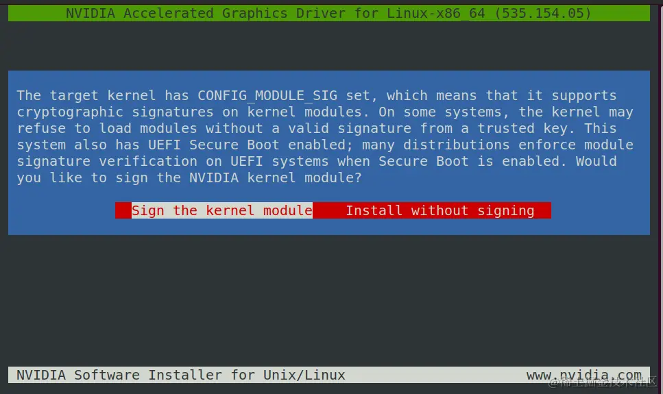 操作系统: ubuntu 20.04 更新时间: 2024年2月21日 显卡型号: RTX 4080 驱动版本: 535.154 安装说明: 本次安装BIOS设置了安全启动;安装显卡驱动后可能还存在无法使用拓展屏幕的问题,在BIOS中修改为只使用独立显卡。