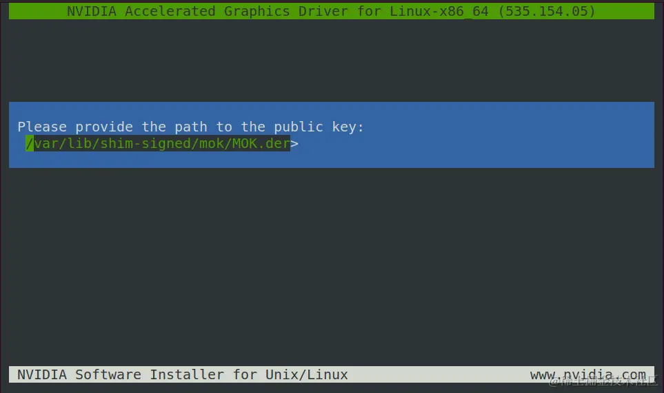 # 验证 Linux 实例是否启用了 UEFI 安全启动 mokutil --sb-state # 查看内核版本 uname -r sudo apt install mokutil sudo apt install shim-signed # 在 /var/lib/shim-signed/mok/ 文件夹中生成密钥 MOK.priv 和 MOK.der sudo update-secureboot-policy --new-key- 生成的密钥(MOK.priv 和 MOK.der)存放在
