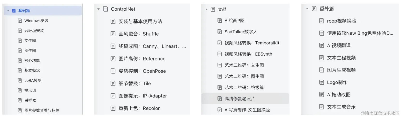 文章中使用的SD模型、Lora模型、SD插件、示例图片等,都已经上传到我整理的 Stable Diffusion 绘画资源中;另外我整理了自己输出的关于 Stable Diffusion 的所有教程,包括基础篇、ControlNet、插件、实战、模型训练等多个方面,比较全面、体系化,特别适合新手和想要系统化学习使用Stable Diffusion WebUI的同学。最新下载地址请发消息 SD 到公/众\号 yinghuo6ai ,即可获取。