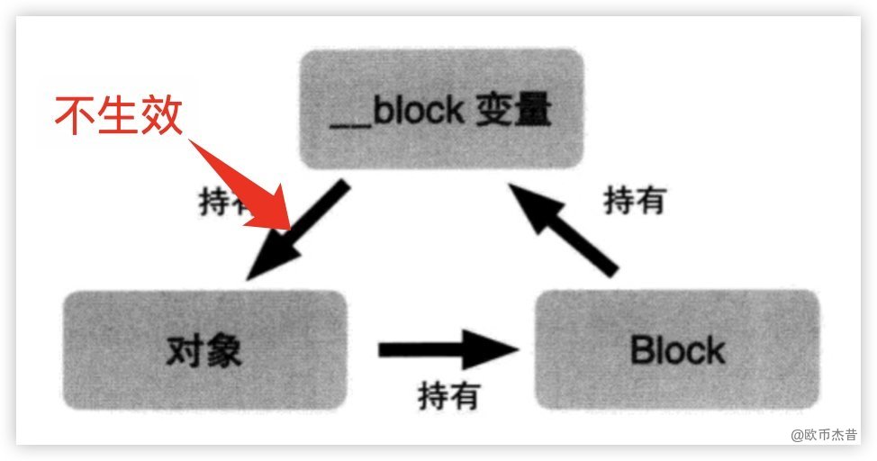 需要注意的是,使用__block必须调用block。因为使用__block修饰后,在block里面需要置空,如果没有调用block,就没有置空操作,它依然是循环引用状态无法销毁