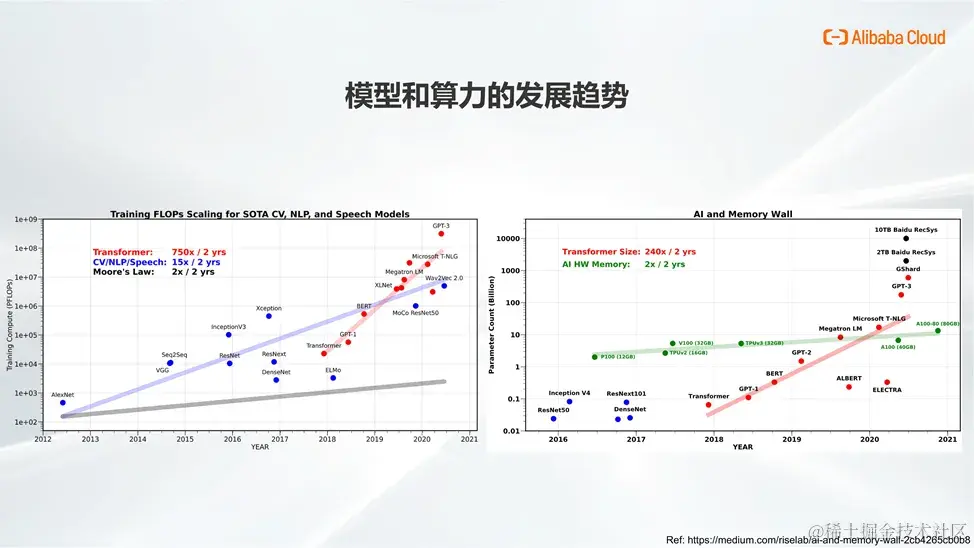 再者,随着模型结构日益复杂,且规模不断增大,用户对计算资源的需求也在持续攀升,因此,进一步优化模型在训练过程中的计算密集度及减少访存开销也非常关键。