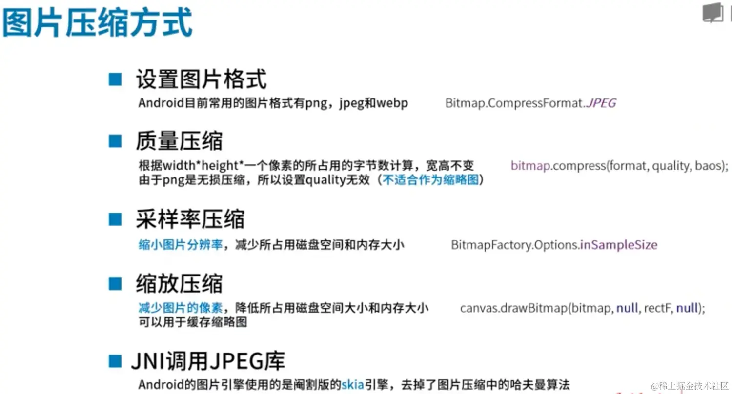 Android高级-图片压缩 LiuJP 2024-03-25 99 阅读1分钟 ndk压缩用到libjpeg ####luban www.jianshu.com/p/632e0c585… ####luban缺点 ####URI变化
