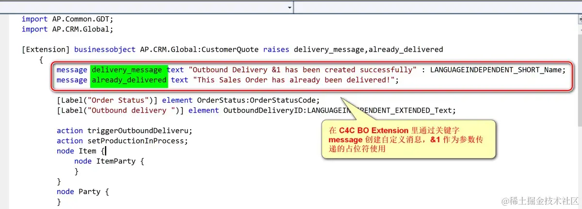 运行时 delivery_message 定义的消息文本里的 &1,会被 this.outboundDeliveryID 字段的值取代。