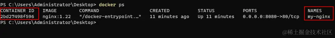 - 命令中的**--name** 指定了容器的名称为my-nginx