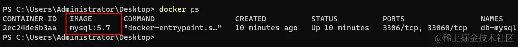 注意,我们没有使用docker pull下载mysql镜像,但已依旧开启了一个db-mysql新容器。
