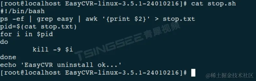 2)编写stop.sh脚本来控制EasyCVR停止;
