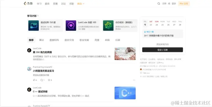 经典的知名刷题网站,以算法题为主,当然也包含其它内容。学习完后,可以在平台上刷题进行巩固,增强熟练度。网站很简洁,实用性很强,跃跃欲试的小伙伴可以冲~