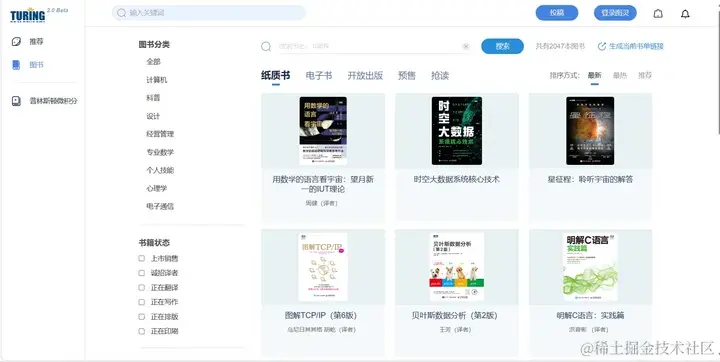 里面有超多的技术类书籍,包括计算机、数学统计等诸多内容,程序员朋友可以用以学习。既有免费的,也含付费的,提升专业素养或者开拓新知很OK。购买方式支持网银和支付宝,还是比较便捷的。