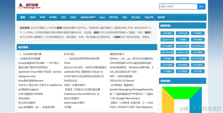 包括Java、PHP、C、C++、CSS等内容,大量IT编程入门教程可供学习。如你可见,全程免费、白嫖,资源多多。分类清晰明了,进去就是嘎嘎学,没有废话和广告。对于新手、码农想拓展、提升的比较推荐!