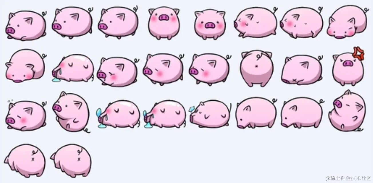 “雪碧图”技术本质就是多图片拼合技术,以 2D 游戏的开发为例,游戏角色的行为如攻击、跳跃、蹲下等,就是由多张图片组合的结果,表现出来的不同动作其实就是不同图片的切换,状态很多,对应的图片很多,这样的话我们就要保存非常多的图片,不太好维护,同时在网页加载过程中服务器接受请求的次数也多,对加载性能有一定折损。所以通常会将这个角色的所有动作放到一个图片上,当角色行为发生变化时,就通过程序修改位置和宽高信息截取到对应的状态图片,从而减少服务器接收和发送请求的次数,提高页面的加载速度。