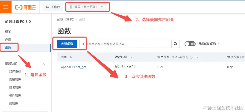 - 首先,我们使用阿里云的函数计算功能搭建一个美国环境的服务