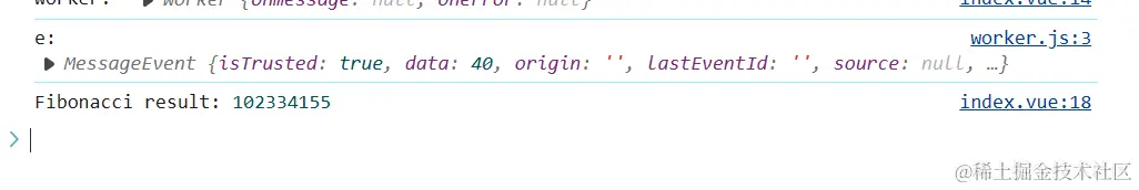 this.worker.postMessage(40) // 请求计算斐波那契数列的第40项