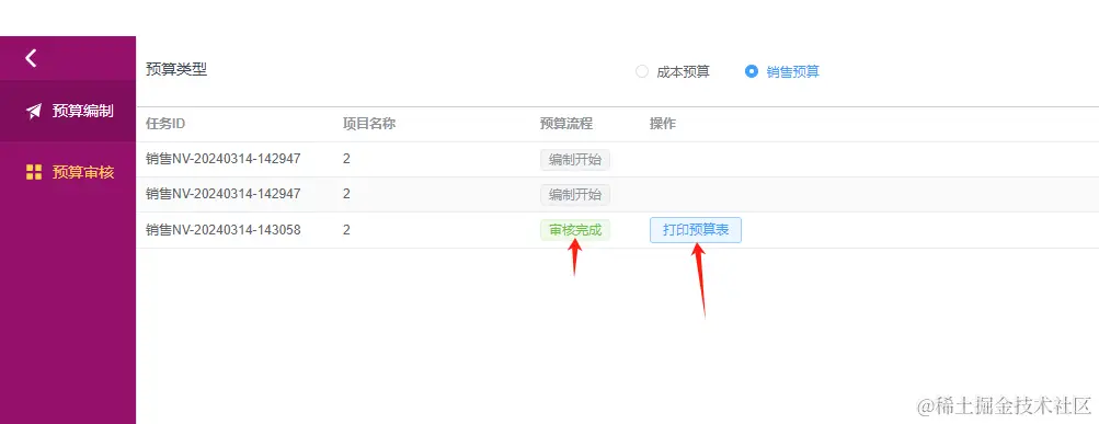 此时点击“预算审核”,预算类型设置为“销售预算”,可以看到有一条待审核的标签,点进去看看。