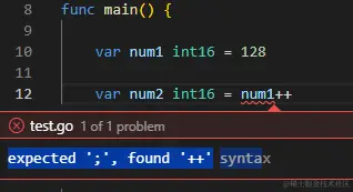 在Go中,++只能作为后置操作符使用。并且该语句并没有返回值,所以不可以用变量接受