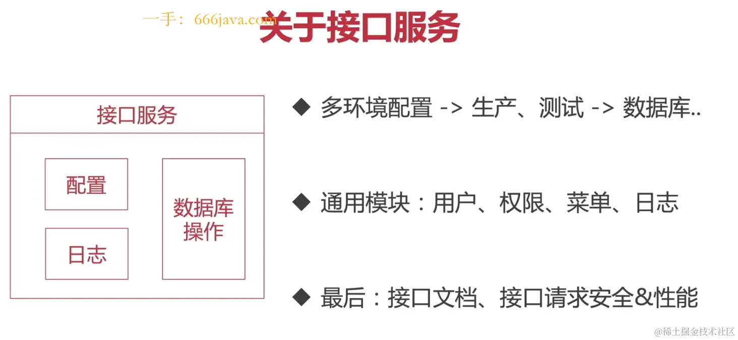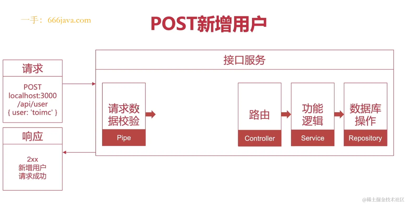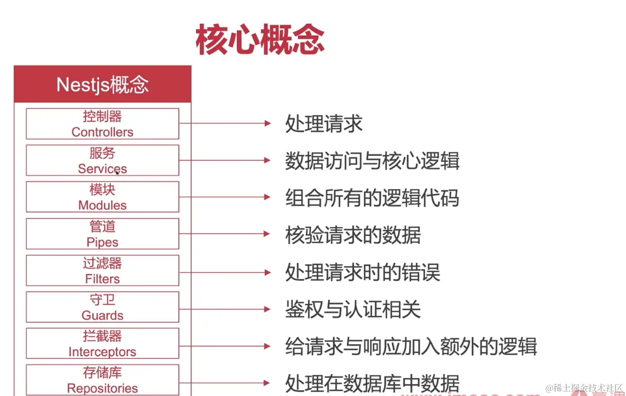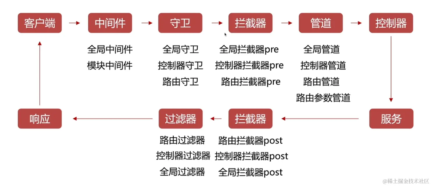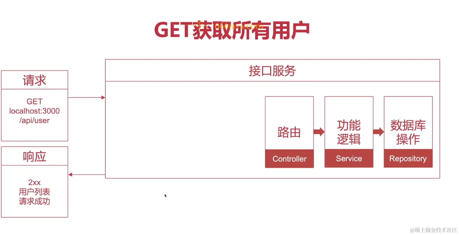 4、通用业务框架设计-配置 零道 2024-03-26 63 阅读1分钟 1、项目需求分析 用户痛点问题 用户功能最小闭环是什么 辅助最小闭环实现到项目上线 2、通用后台项目需求分析 1、接口服务,提供可靠web服务,集成数据库+Redis 2、实现最小闭环: 接口CRUD、认证、鉴权 3、服务器部署与测试 3、技术栈选型 NestJS + Typescript ORM : TypeORM Bootstrap + Vue 4、NestJS核心概念 5、接口服务 6、NestJS生命周期 7、功能示例 1、 获取用户列表 2、新增用户
